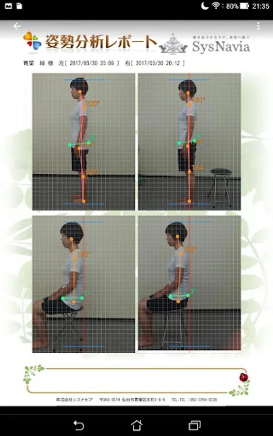 「クラベール」は姿勢分析器等を使用せず、スマホ一台でからだの歪みや姿勢分析が出来るアプリです。姿勢分析の結果は姿勢分析レポートとしてPDF出力することができます。本アプリをご利用になることで施術効果を目に見える形で顧客に示すことが可能になります。