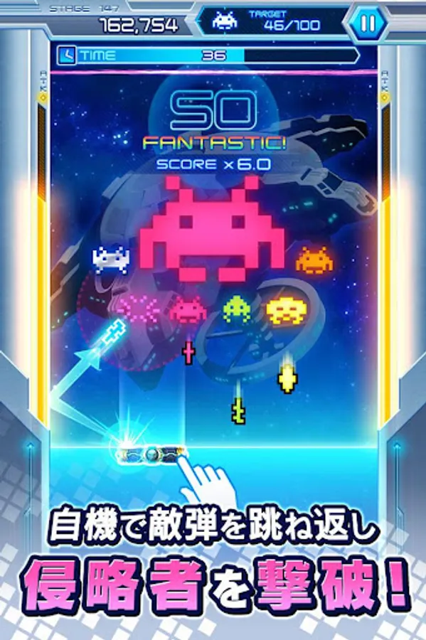・Invaders form a group and carry out various attacks at each stage. Overcome obstacle blocks and various tricks, let's aim to clear.