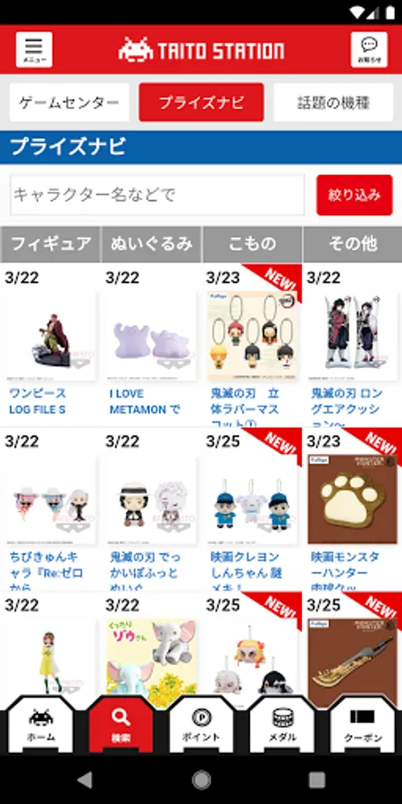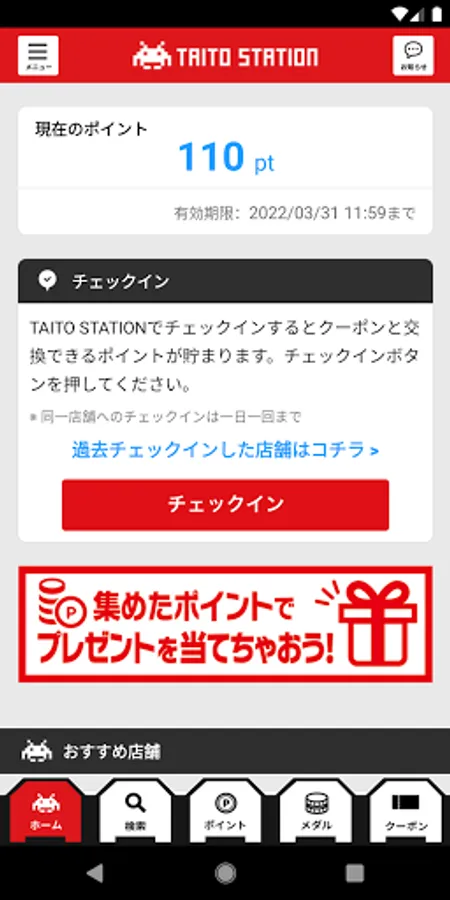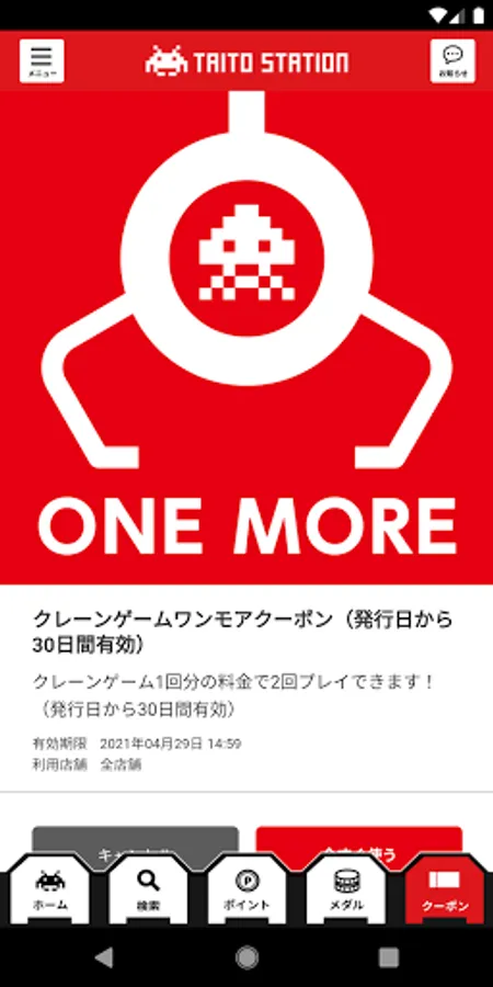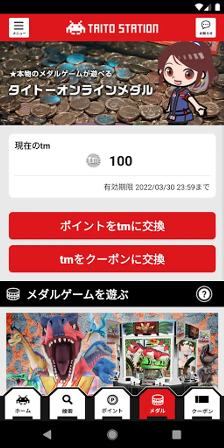 Use the points you earn to redeem coupons that can be used at Taito stores, apply for gifts, and play medal games online. Please enjoy it!