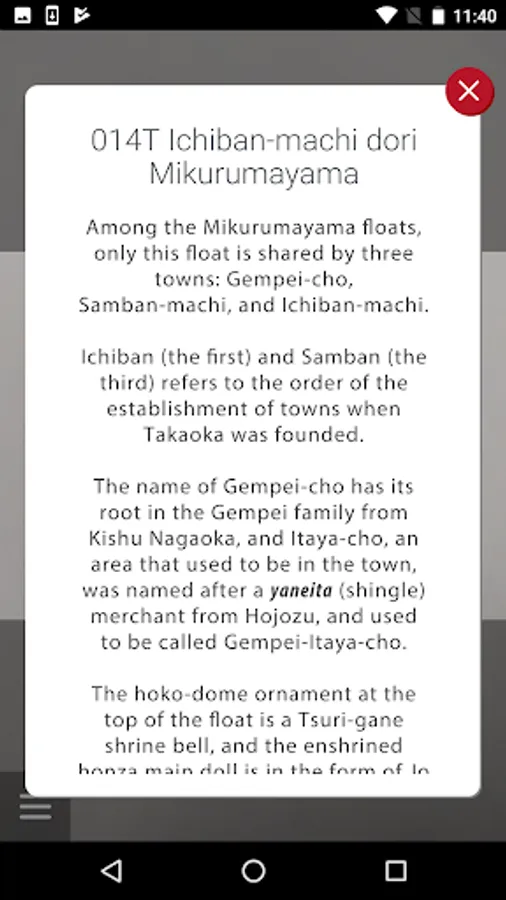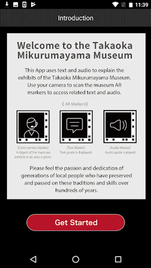 This App uses text and audio to explain the exhibits of the Takaoka Mikurumayama Museum.If you scan the museum AR markers by your camera, you can access related text and audio.