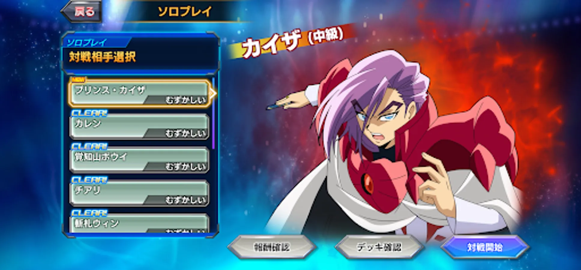Beginning with the game tutorial, players can use 5 types of pre-built decks to play against COM characters!!