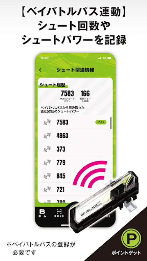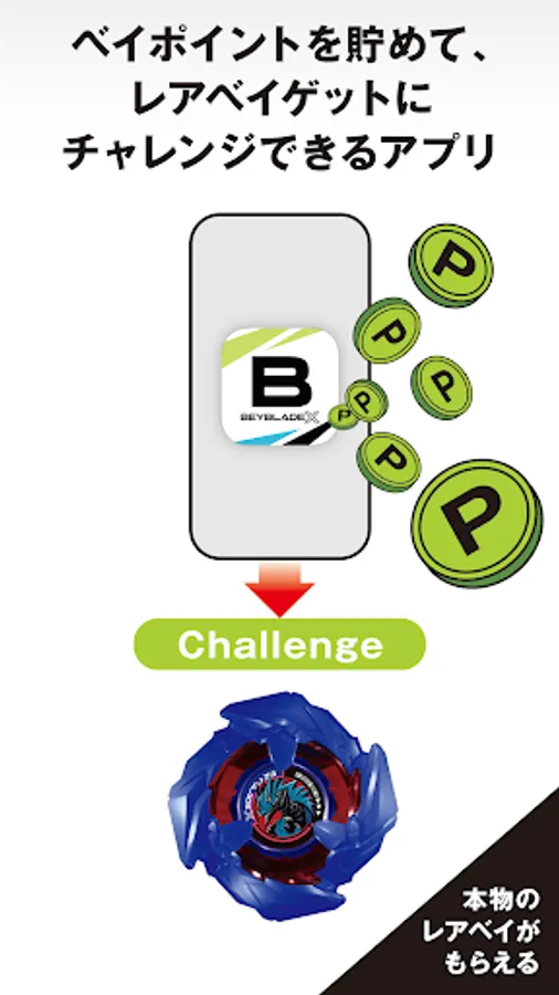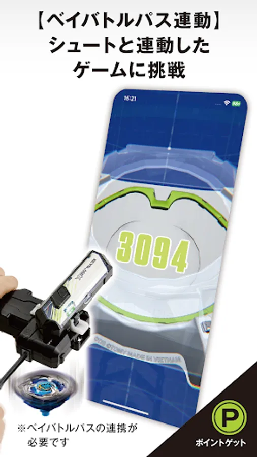 ・Connect the Beybattle Pass to the app and get points with the in-app content "Shoot Gym".