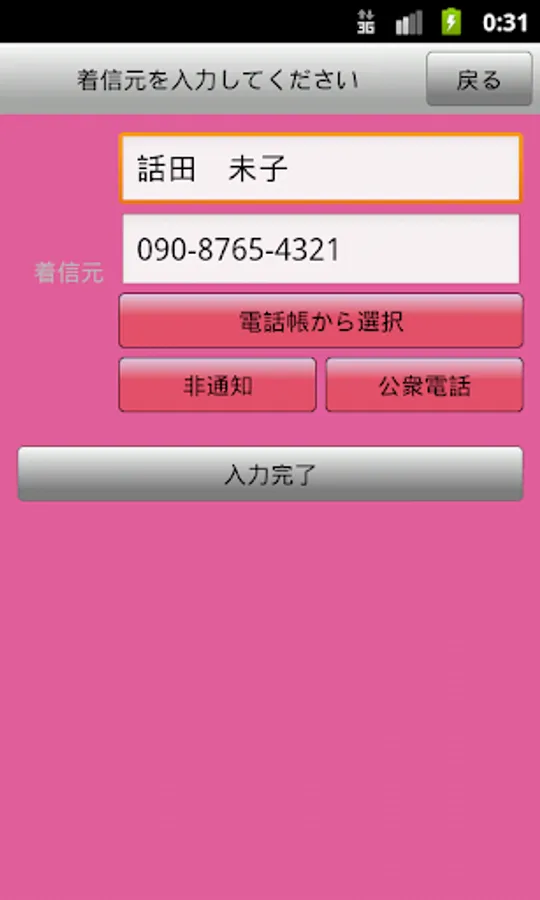 (1) Dummy incoming screen You can enter the name and telephone number of the caller you want to display on your own screen. You can also select from the phone book.