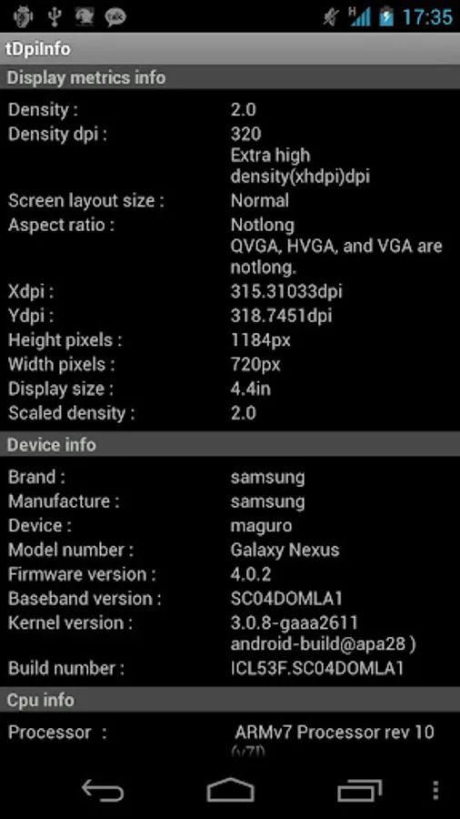 「tDpiInfo」is a developer tool that can show the Dpi information and etc on your Android device.