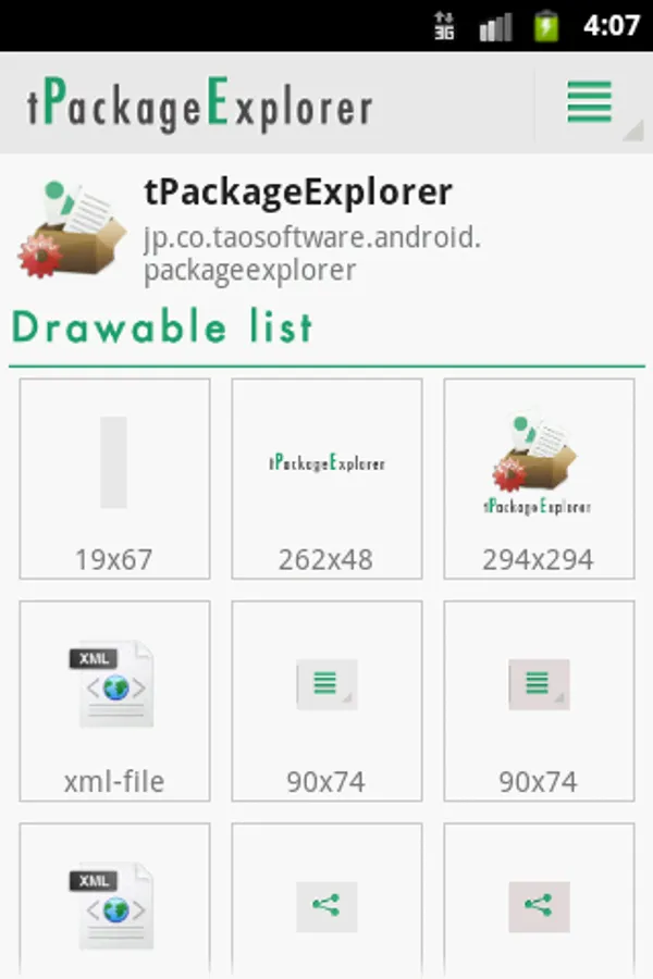 "tPackageExplorer" is the application which checks the resource information on Android application.