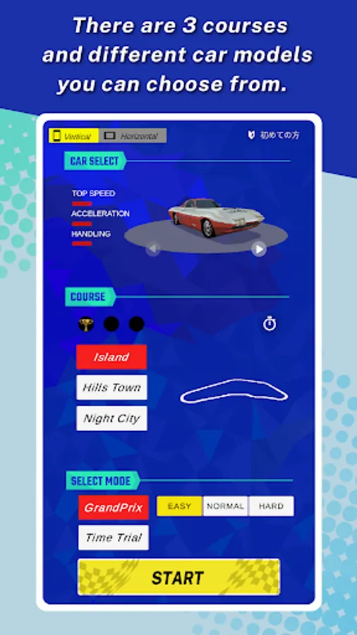 You can switch the racing screen either vertical or horizontal.