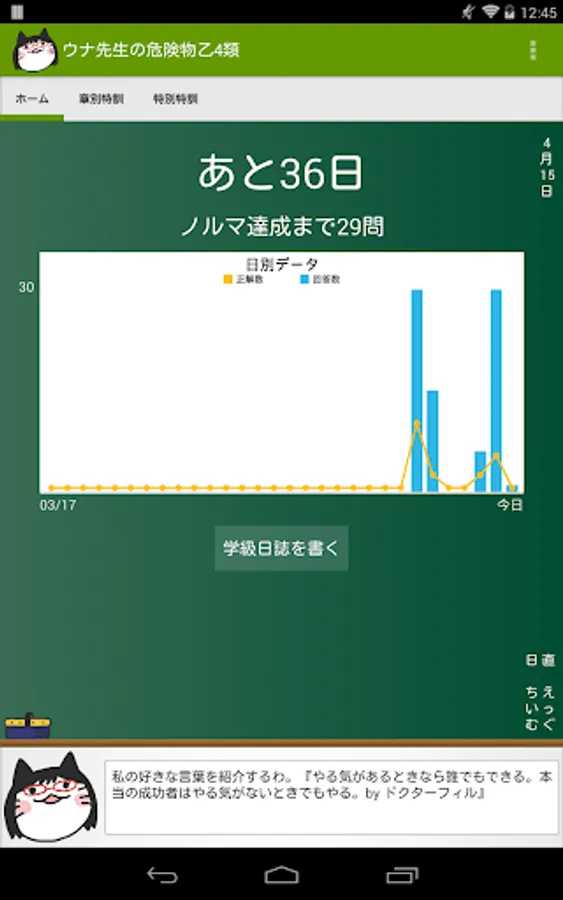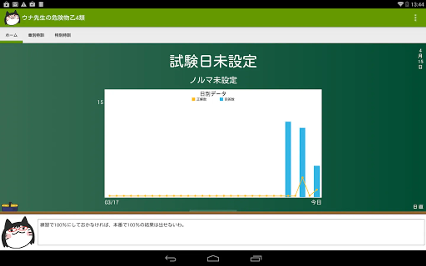 試験勉強時間になるとウナ先生がお知らせしてくれます。毎日勉強するために勉強時間を設定しましょう。