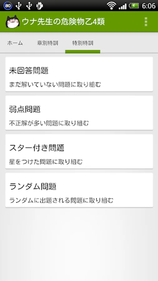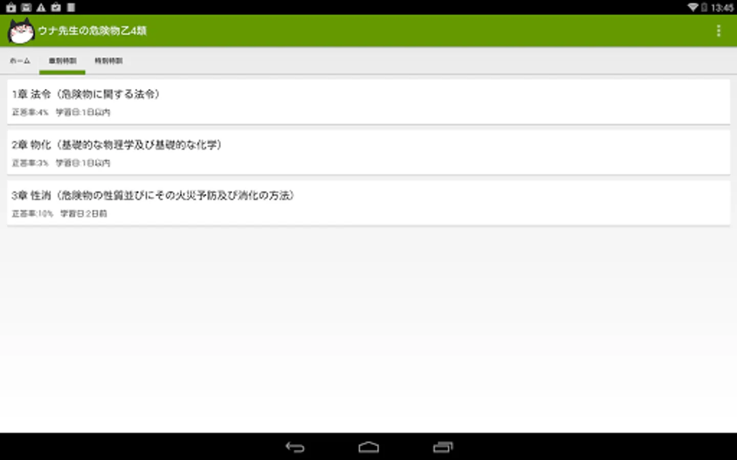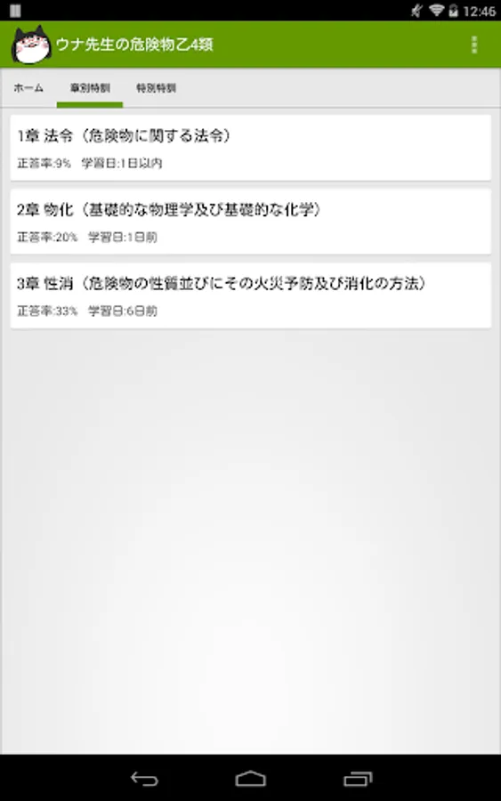 7.章別特訓から最近解いてない問題がないか、飛ばした問題がないか、正答率が低い章がないかを確認しましょう。