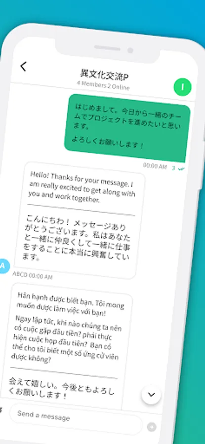 For example, it is OK if the chat group contains not only Japanese but also English, Vietnamese, Chinese, and Spanish. It can be translated and displayed in your native language.