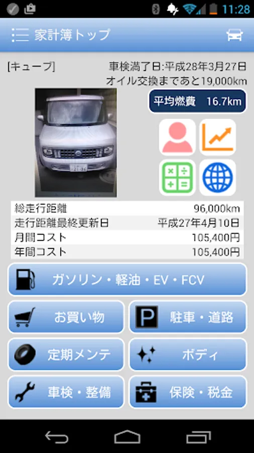 「クルマの家計簿」は、車の経費・燃費・整備履歴などの情報を、スマホで一元管理できるAndroidアプリです。