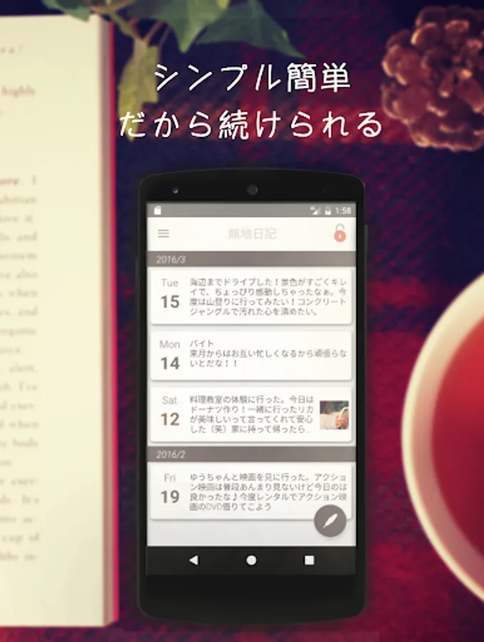 Please enjoy our diary app with BEAUTIFUL and SIMPLE design.