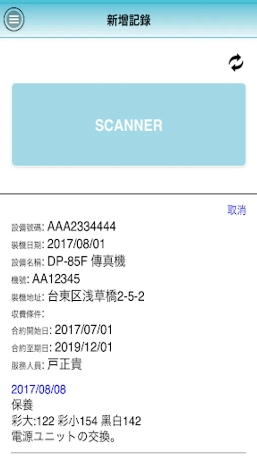 - from the QR code, you can get equipment information, the repair history from iMainte Center2.