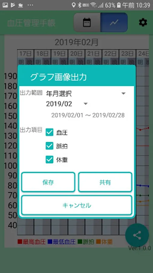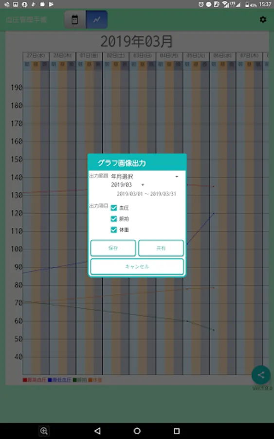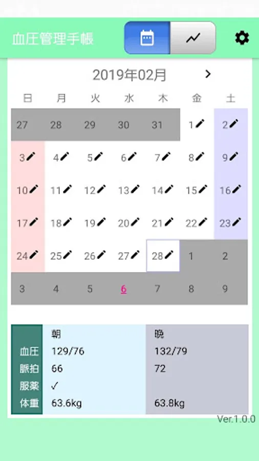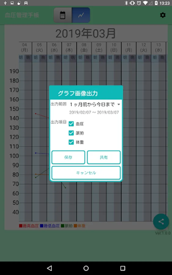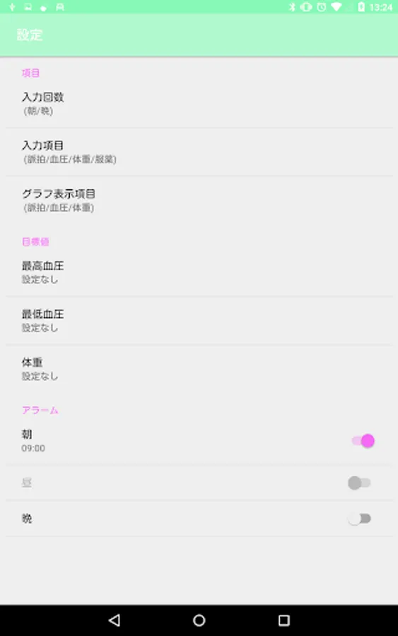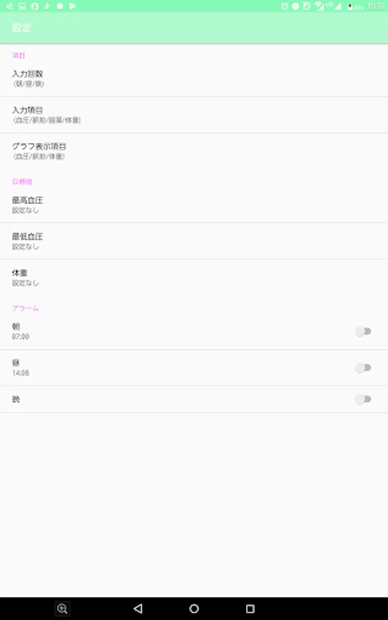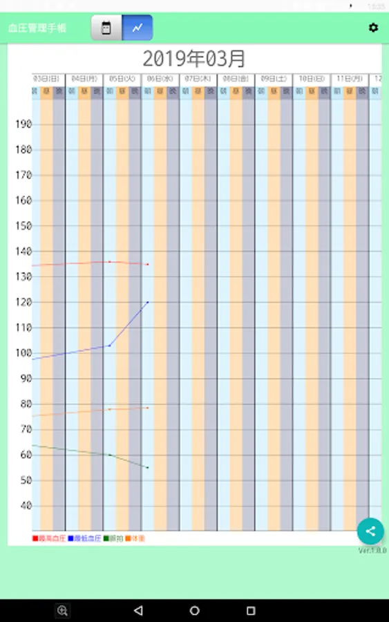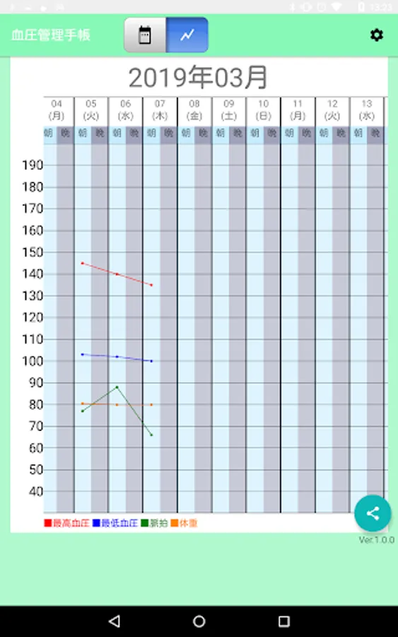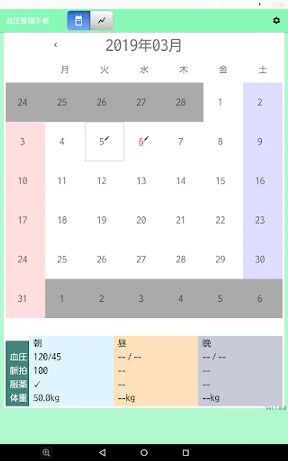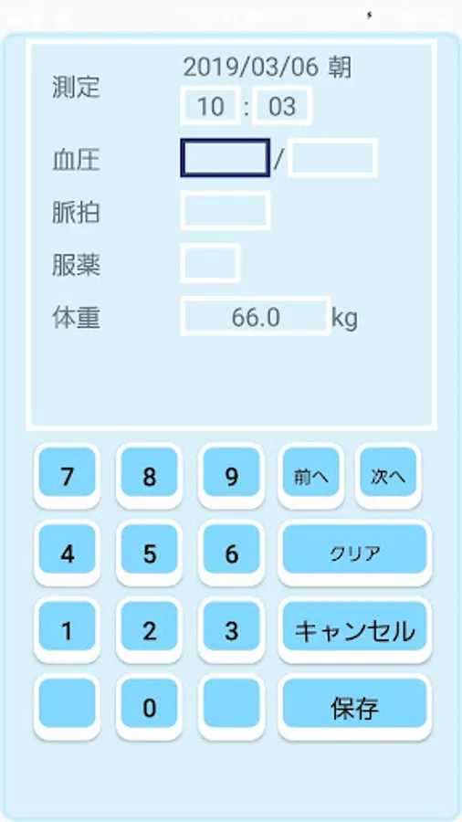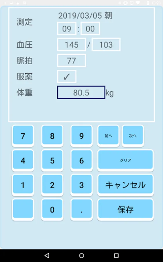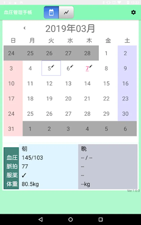・最高血圧・最低血圧の「朝」「昼」「晩」と1日3回入力可能