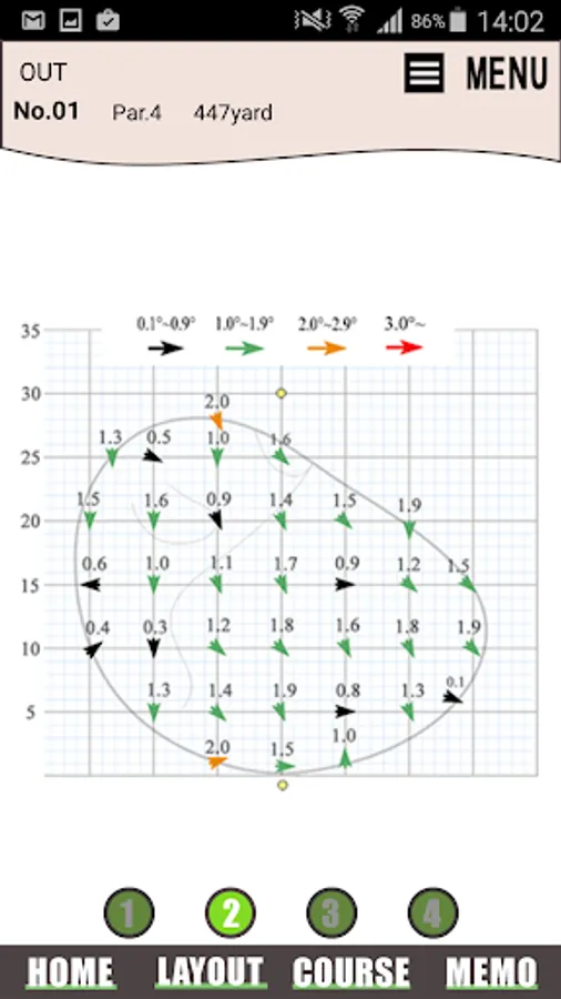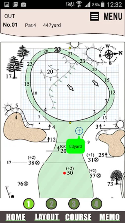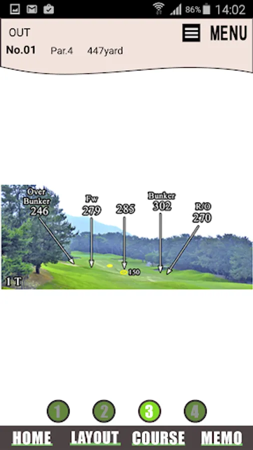 Golf memo, such as the measures detailed distance, such as information and the inclination of the hazard and artificial obstacles that dot the course, so that the players strike an accurate shot, and provides information.