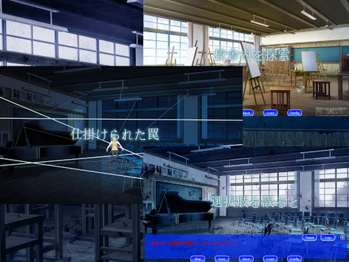少女達と校舎内を探索、トラップを回避しながらアイテムを入手。