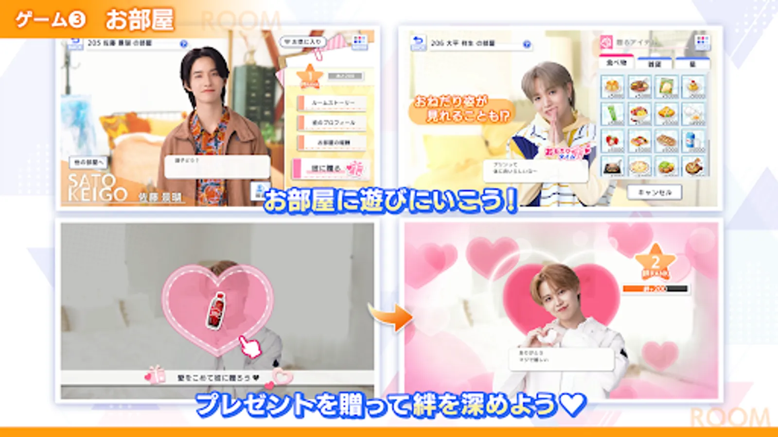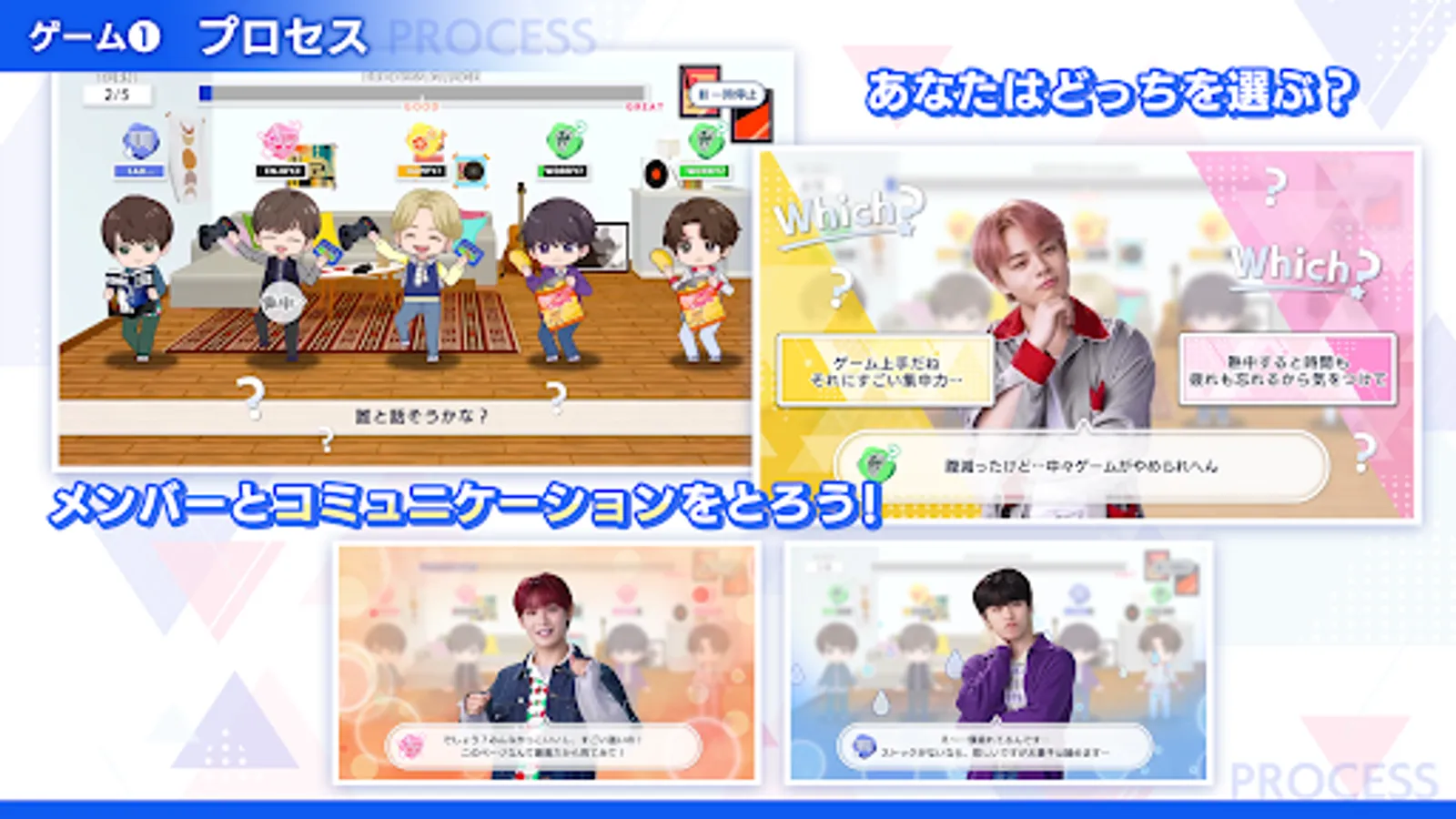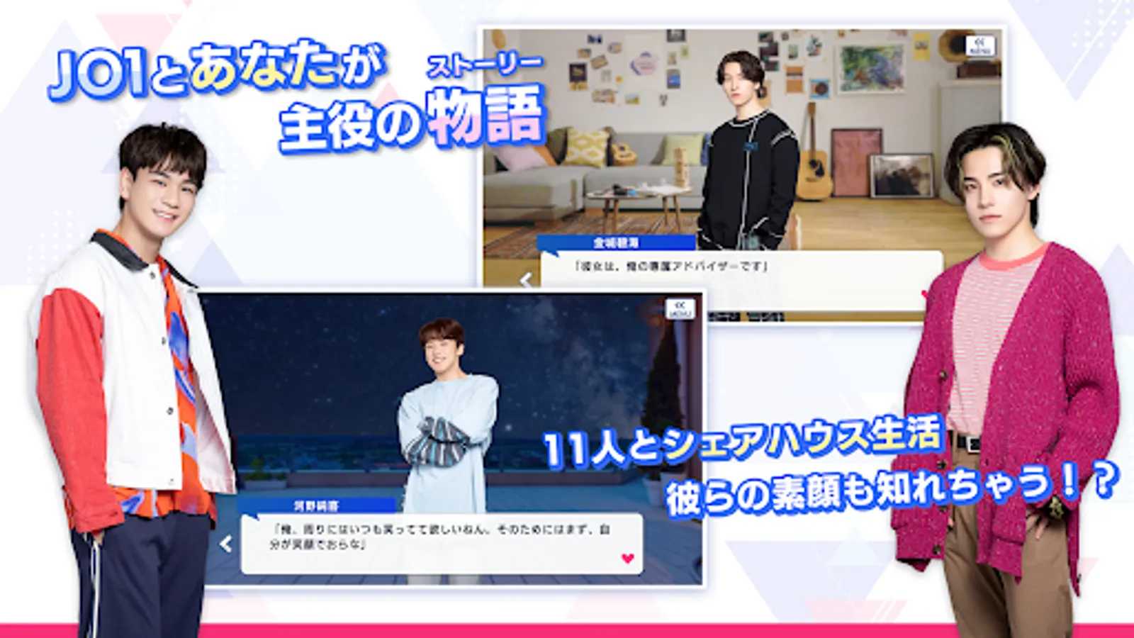 If you play the game part "Process" that communicates with JO1 members, your love rank will increase and the story will progress! You might get to know their real faces in the share house life! ?