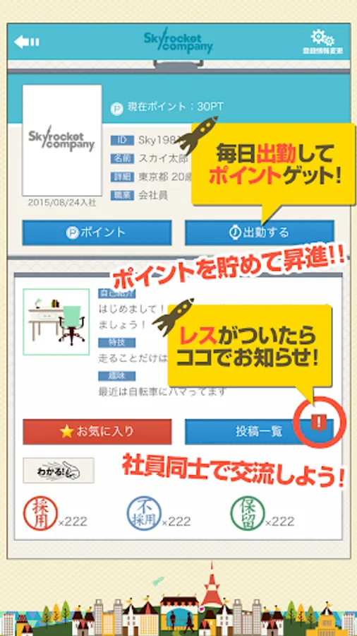 If you collect points, you may be promoted within "Skyrocket Company"!