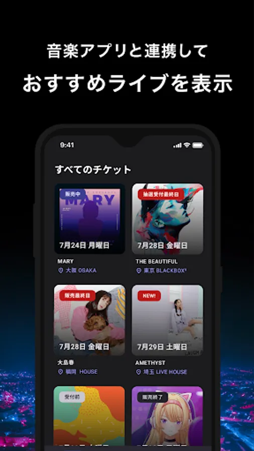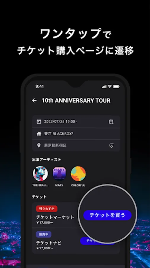 Information on major ticket sites is compiled, so you can easily find a live performance that fits your schedule and purchase tickets with this one app.