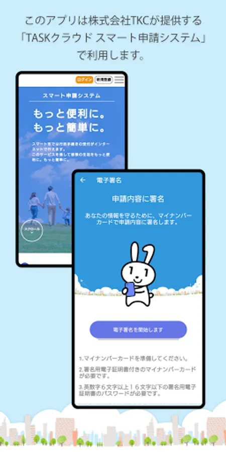 Using Individual Number Card on our serivce, this app can digitally sign the application contents.