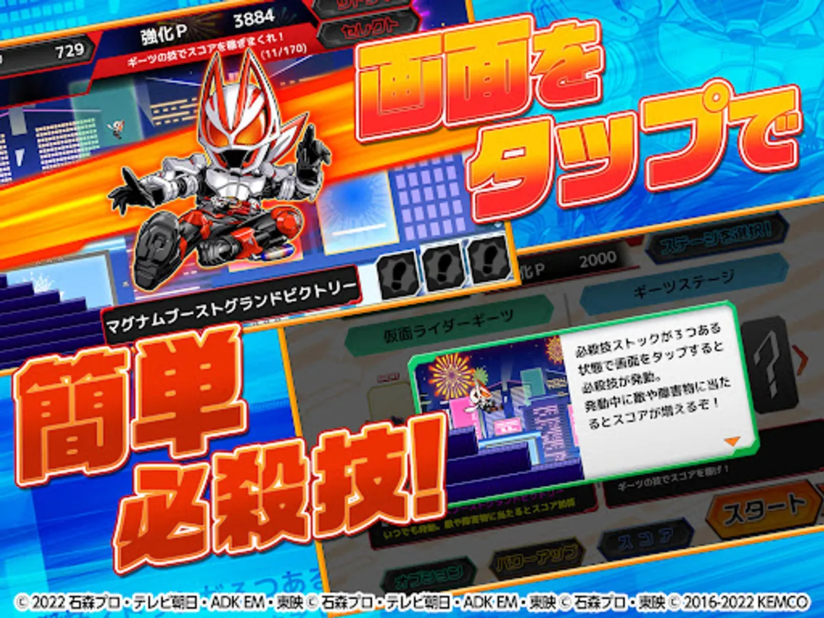 Kamen Rider has different special moves. Let's aim for a new record by utilizing the special move that suits the stage.