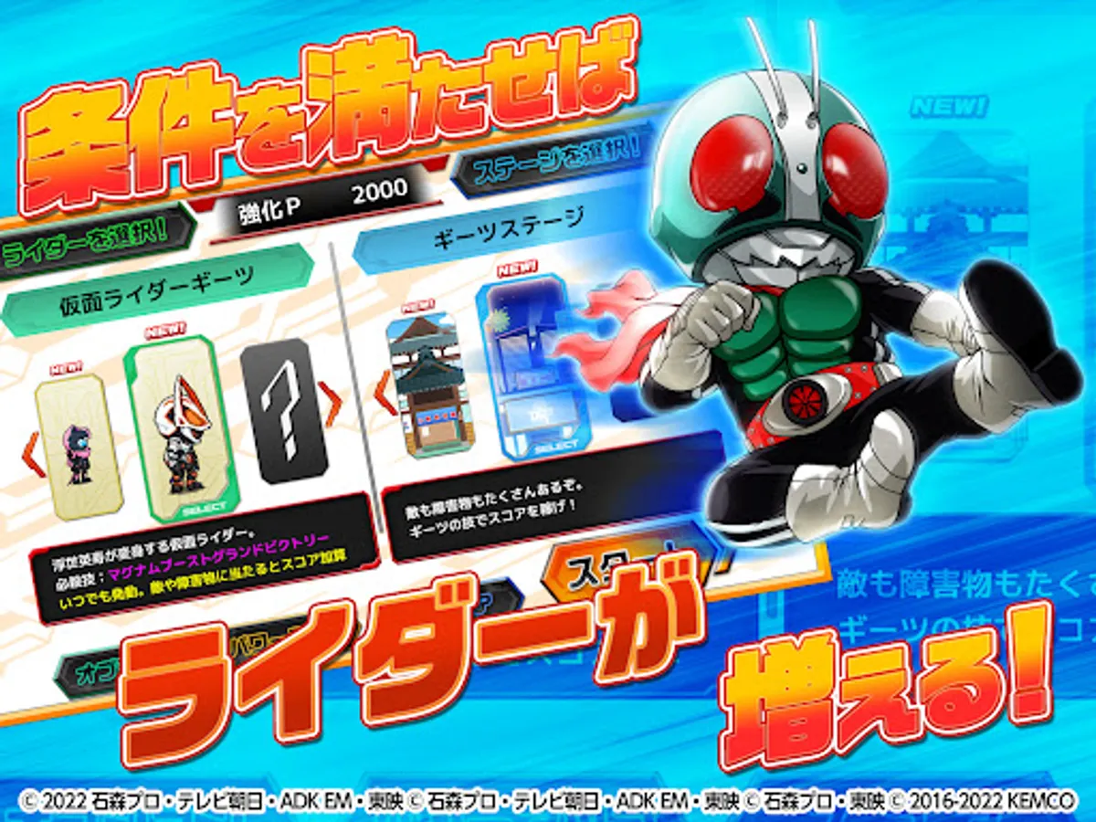 Various Kamen Riders and stages will be added by satisfying the conditions in the game.