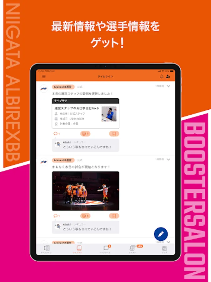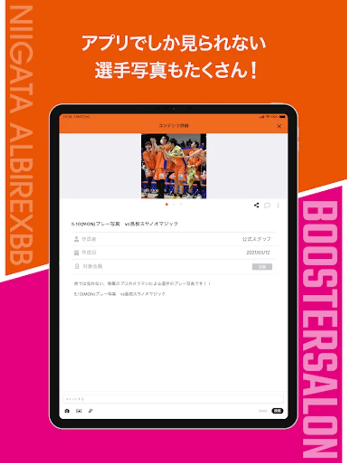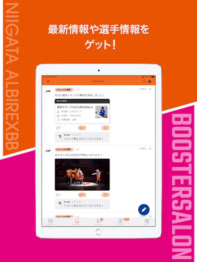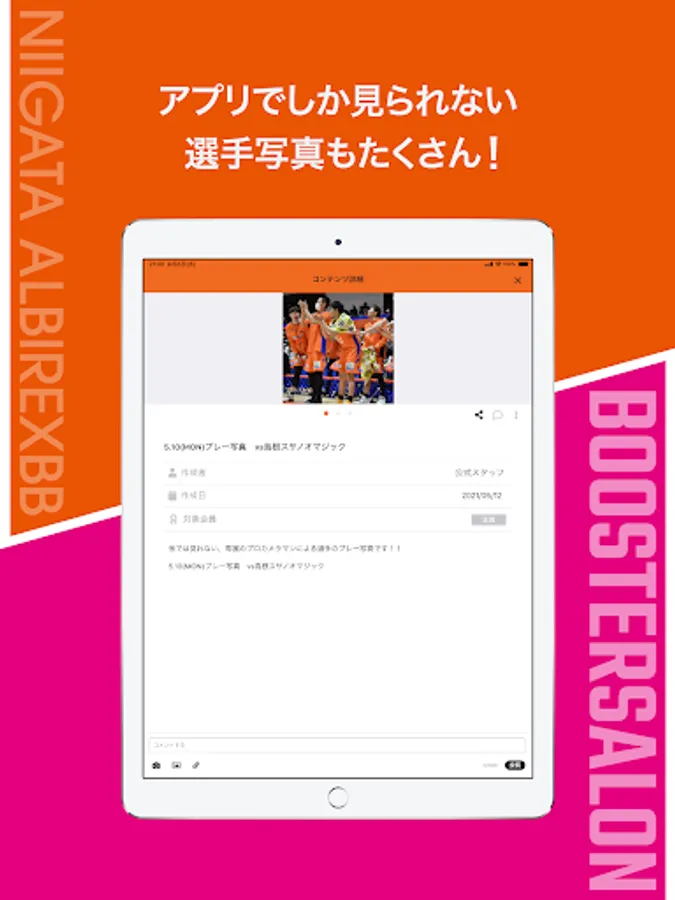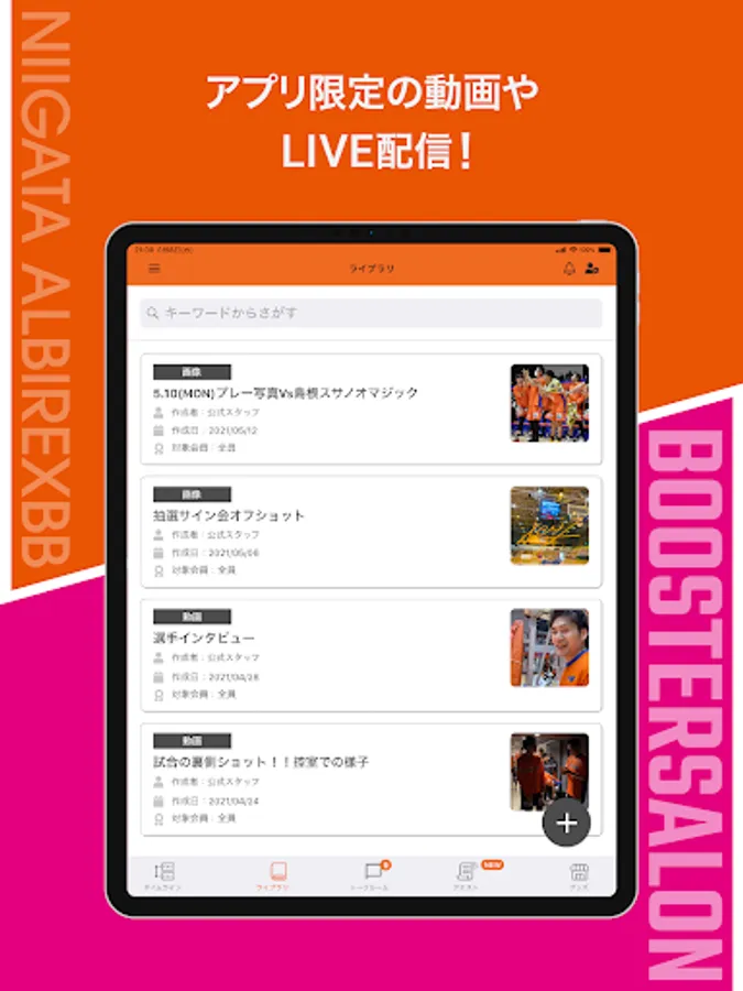 You can see content that can only be seen here, such as the latest information on the team, play photos, and live streaming.