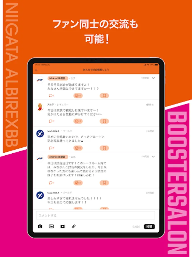 Without obtaining a new ID, you can use the booster salon app by using the e-mail address of the B League ID or Niigata Albirex BB Support Association