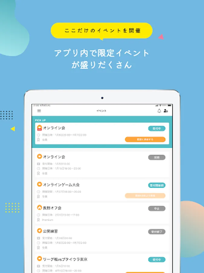 There are plenty of events that can be enjoyed with community owners and members, such as online meetings held by community owners and events from Butaiura! With the event function, you can easily check and participate in events.