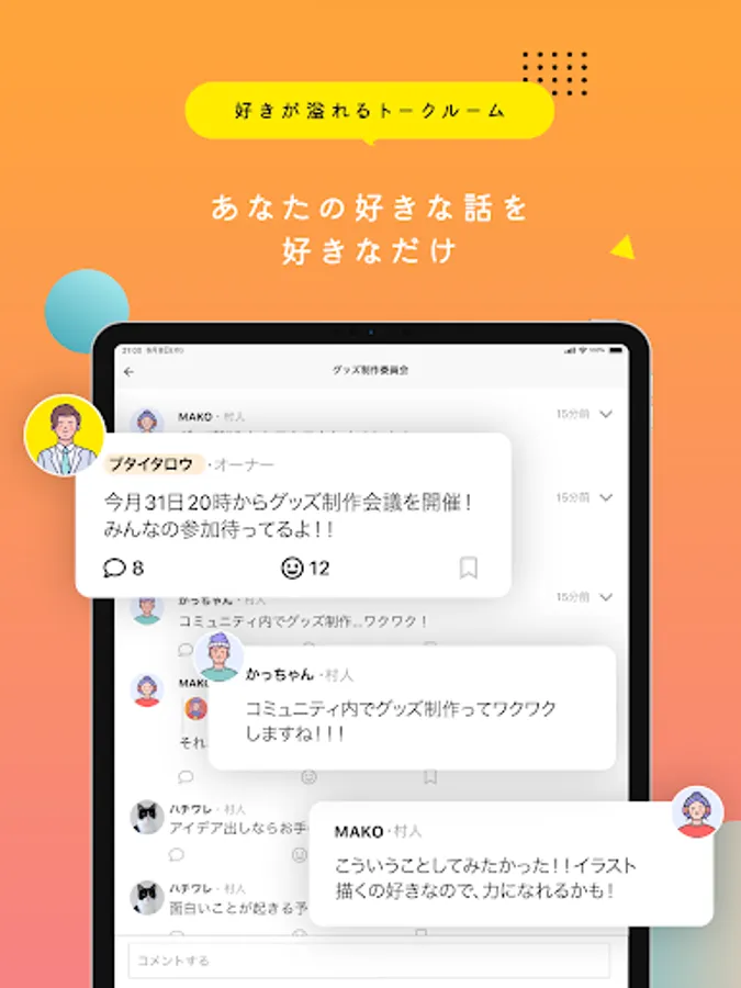 In addition to the design change, a new top screen has been added that allows you to see the inside of the community at a glance. The app is easy to use even for first-time users!