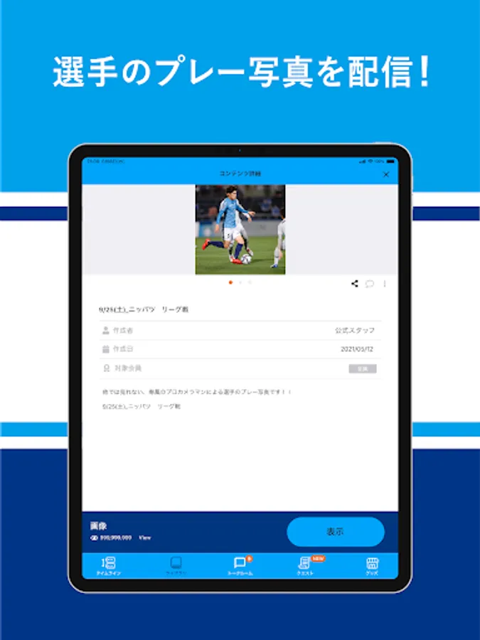 It is a function to post various contents such as player play photos and behind-the-scenes videos of clubs. Posted content is saved for a certain period of time and can be viewed immediately at any time.