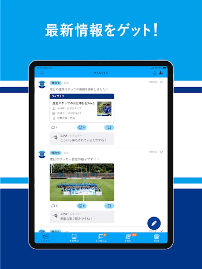 You can see posts and breaking news information from Yokohama FC. It is also a function to post various news about activities in the app at any time.