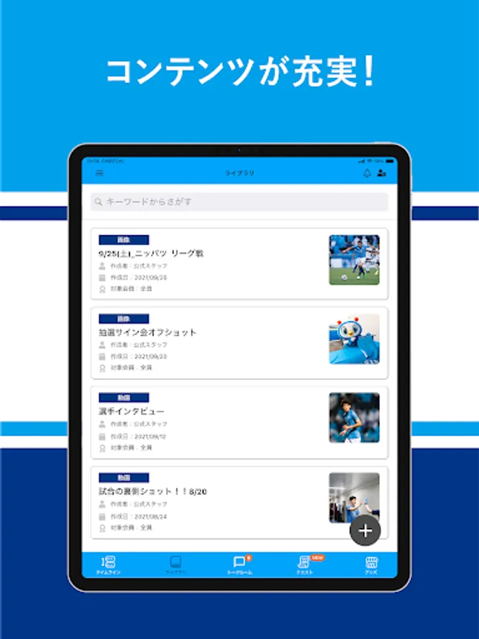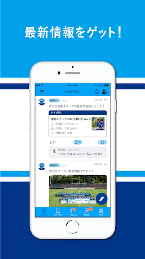 It is a club member-only app where "friends who will strengthen Yokohama FC" gather together with players and staff, fighting together, sharing joy together. You can see a wealth of content about Yokohama FC, such as the latest information on the team and photos of players playing.