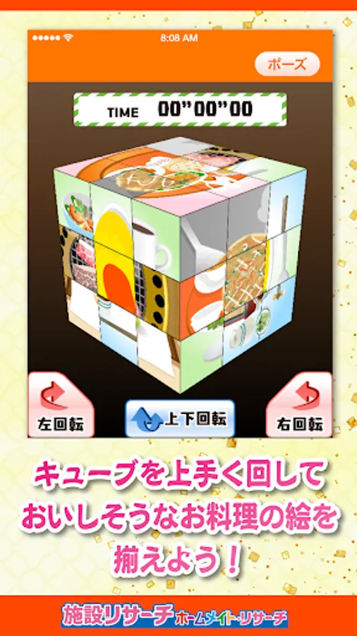 Let's turn the cube well and arrange pictures of delicious dishes neatly!