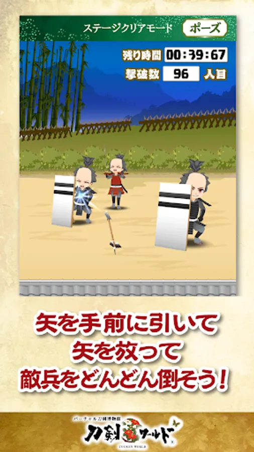 By pulling the arrow in front, it is possible to shoot an arrow from the bottom of the screen.