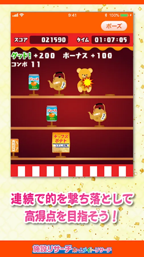 Score combo bonus and shoot down the target in a continuous up!