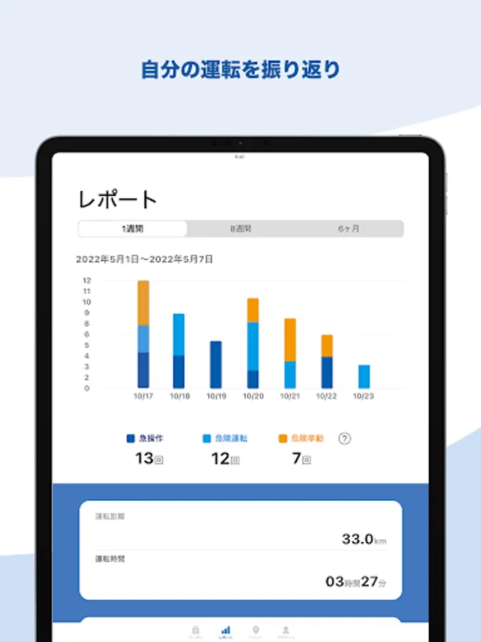 ・The number of sudden maneuvers, dangerous driving, and dangerous behavior is displayed in a graph.