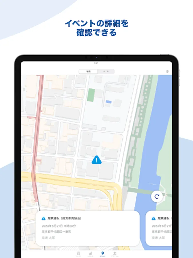 ・You can check detailed information such as the date, time, location, and vehicle speed.