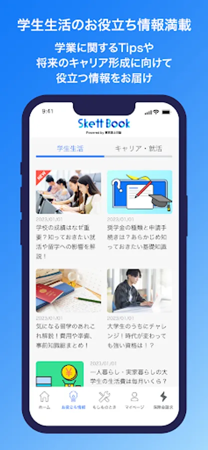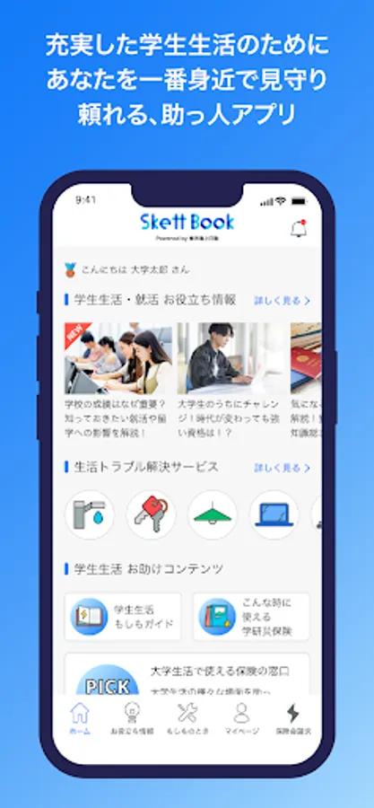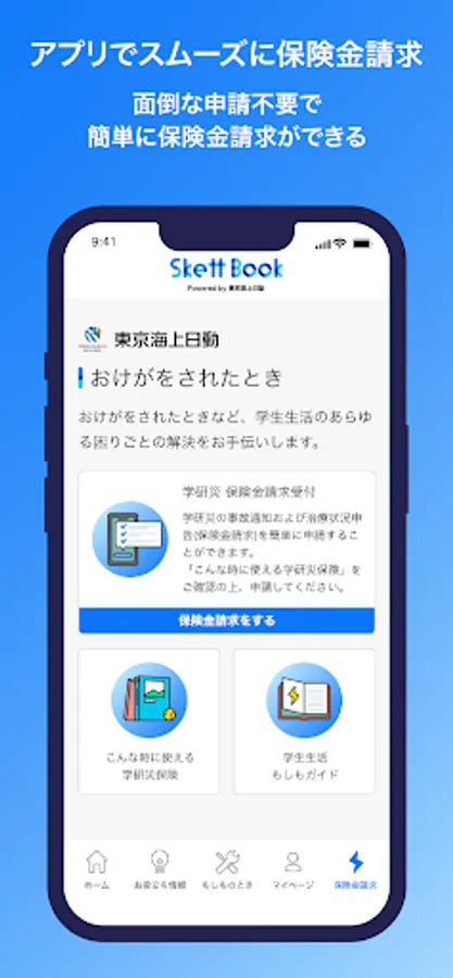 This is a smartphone app provided by Tokio Marine & Nichido for subscribers of Personal Accident Insurance for Students Pursuing Education and Research (Gakkensai).