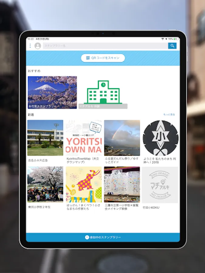 1 Start the “Machi-Archi” application and select a stamp rally to participate.