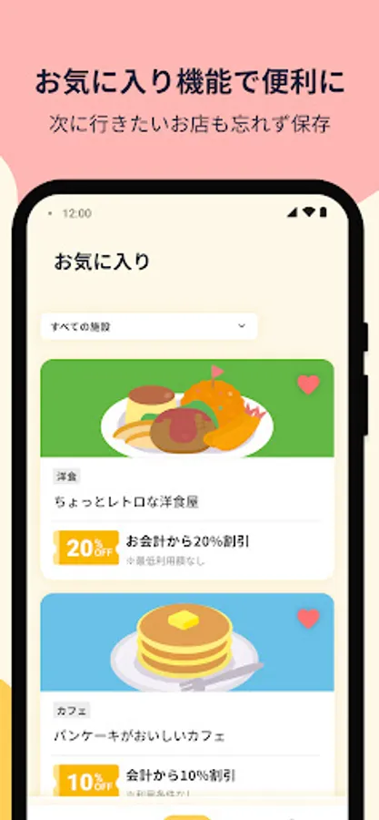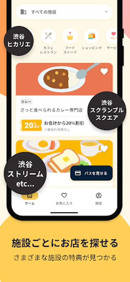 By presenting the pass screen of the app at the store, you can receive preferential treatment for each store listed on the app. Please use the favorite registration function and the function to narrow down the stores by facility.
