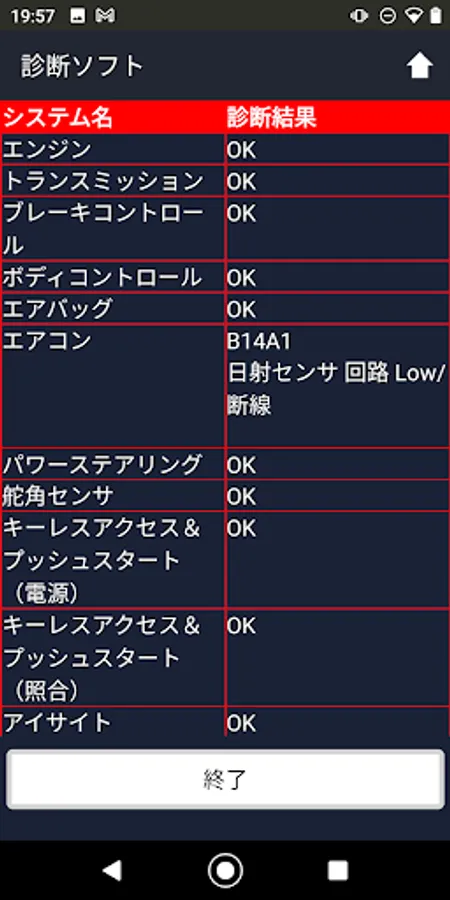 In addition, after diagnosis, a work report indicating that the aiming work has been performed and completed is output.