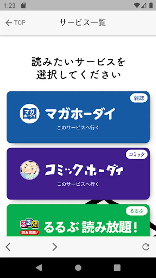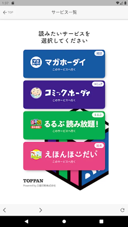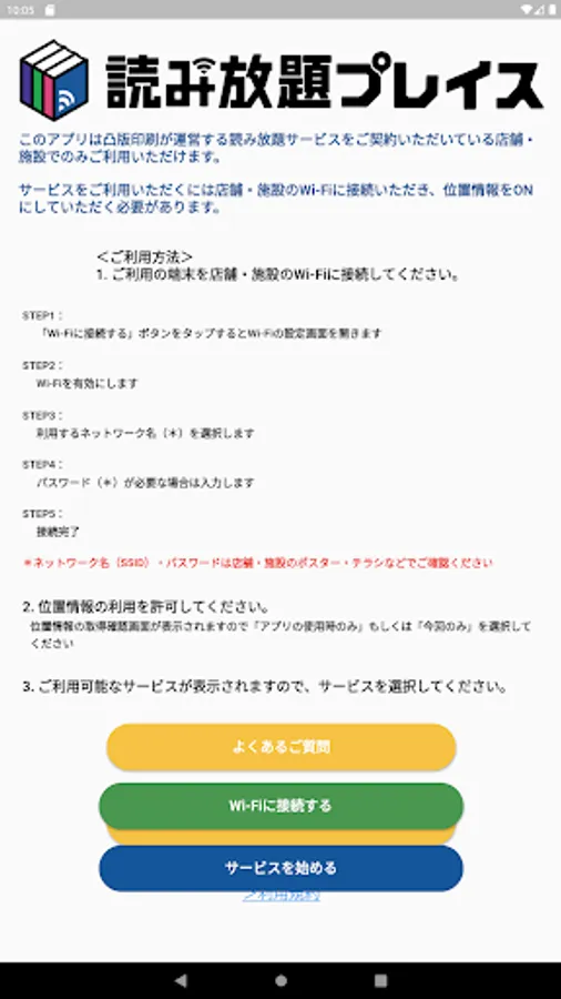 ・ Refer to the posters and leaflets in the target store / facility, connect your smartphone or tablet to the Wi-Fi in the store / facility, and then start the app to start unlimited reading.