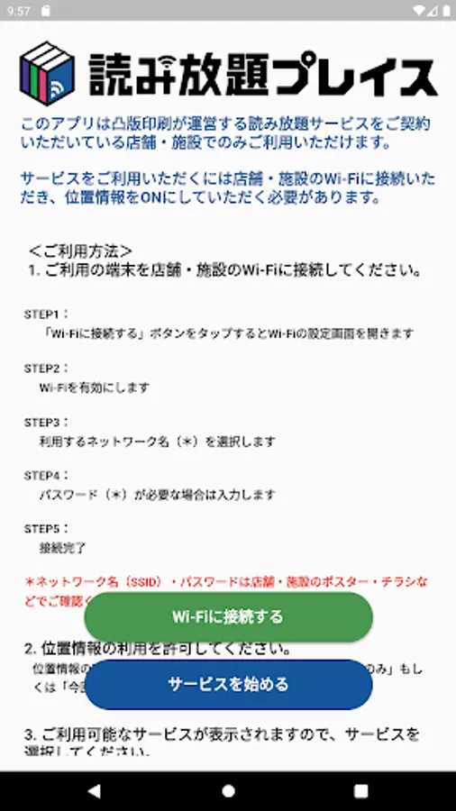 ・ If you go out of the Wi-Fi area of the store / facility, the all-you-can-read service will be interrupted.