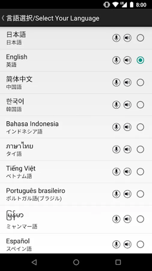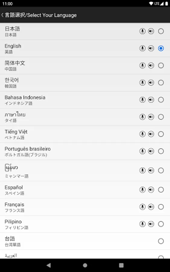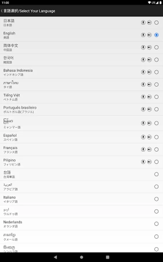 Japanese ⇔ English / Chinese (Simplified) / Korean / Indonesian / Thai / Vietnamese / Portuguese (Brazil) / Myanmar / Spanish / French / Philippine / Taiwan Chinese (Traditional) / Arabic / Italian / Urdu / Dutch / Khmer / Sinhara / Danish / German / Turkish / Nepalese / Hungarian / Hindi / Portuguese / Malay / Mongolian / Lao / Russian