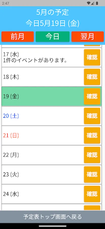 Events can be viewed as a schedule calendar, and you can easily check attendance from the app.