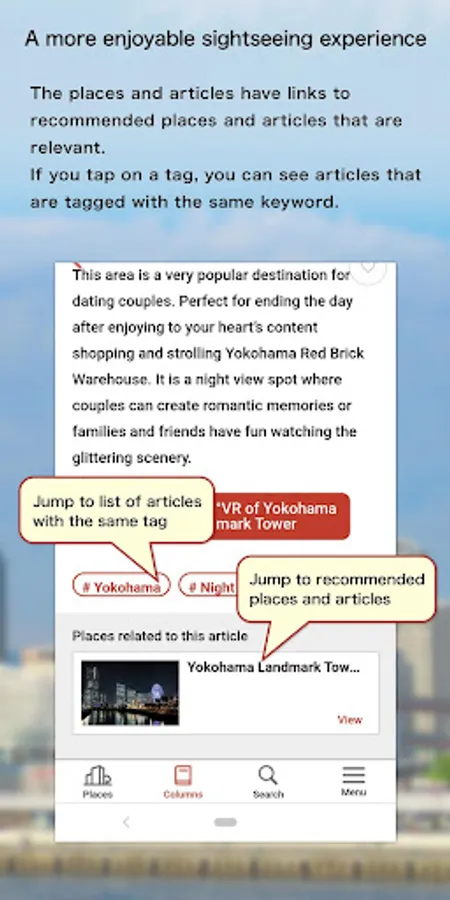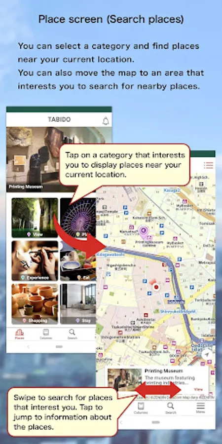 TABIDO not only finds the best places for you to go, but also navigates you to the best way from your current location to tourist spots.