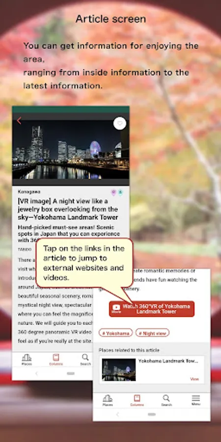 The TABIDO app brings you the scenery of tourist hotspots, which vary by season and time of day, in 360° VR.