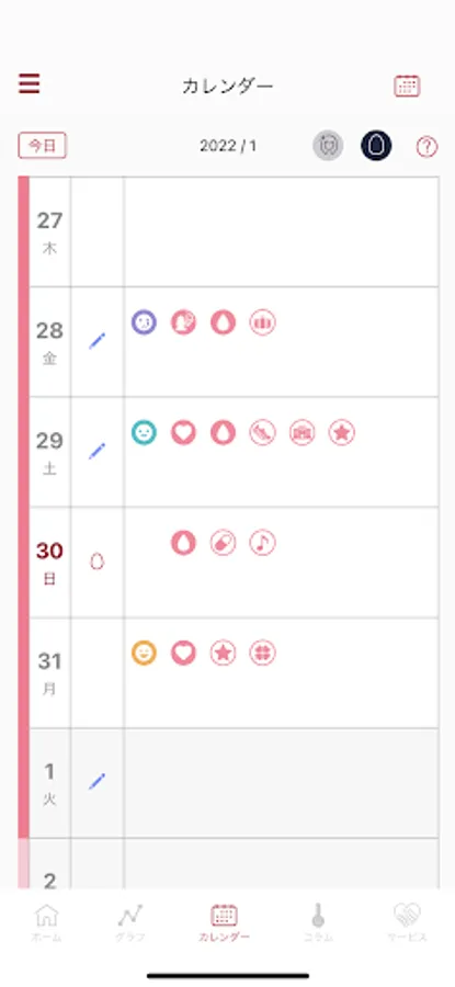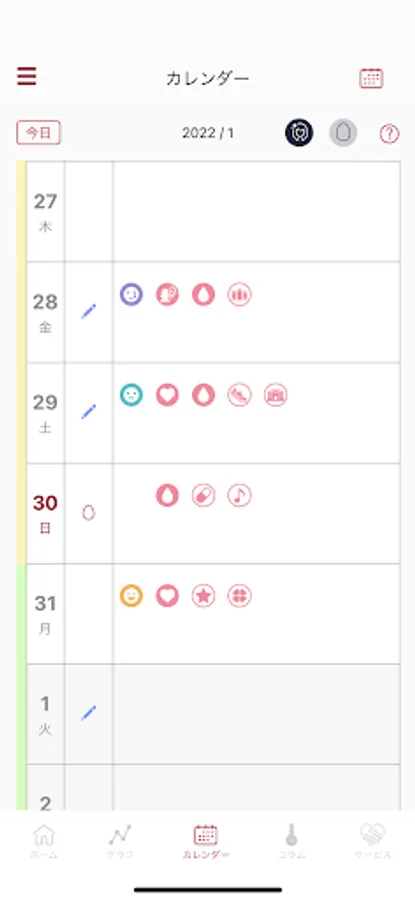 ・ Calendar (event registration display, color-coded display of physical condition prediction)