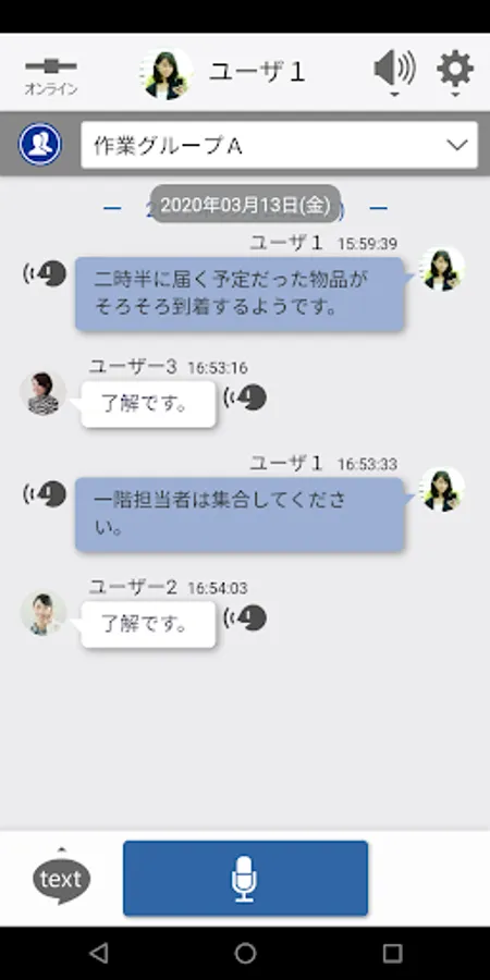 Since the voice spoken by other users is automatically played, it can be used like an intercom. Similarly, the voice you speak will be automatically played on the other user's side.