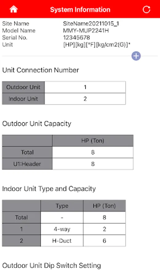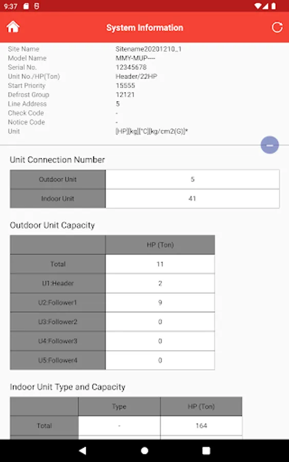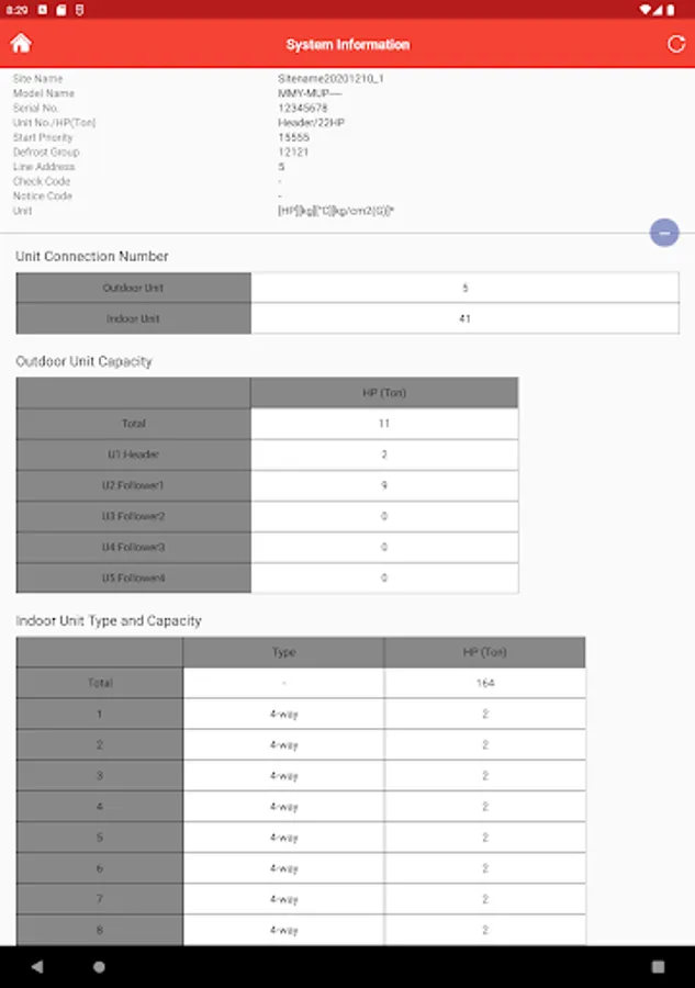 - Displaying system information (e.g. unit configuration and cooling capacities, etc.)